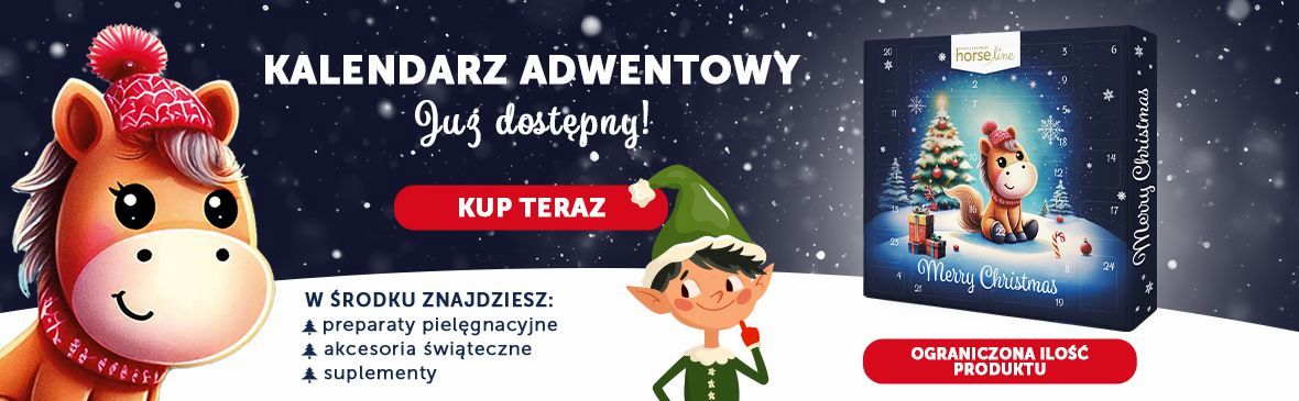 Kalendarz adwentowy HorseLine PRO zawiera 24 prezenty, na każdy dzień adwentowego oczekiwania. Wybraliśmy je z myślą o naszych Klientach i ich koniach. W okienkach odnajdziesz preparaty pielęgnacyjne dla koni, suplementy i świąteczne akcesoria. Odkrywaj codziennie nowe niespodzianki, przygotowane specjalnie z myślą o Tobie i Twoim czterokopytnym przyjacielu!